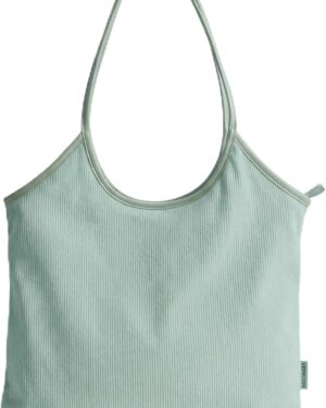 Mint Green Canvas Tote Bag With Front Pockets And Shoulder Strap