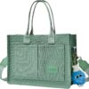 Mint Green Canvas Tote Bag With Front Pockets And Shoulder Strap