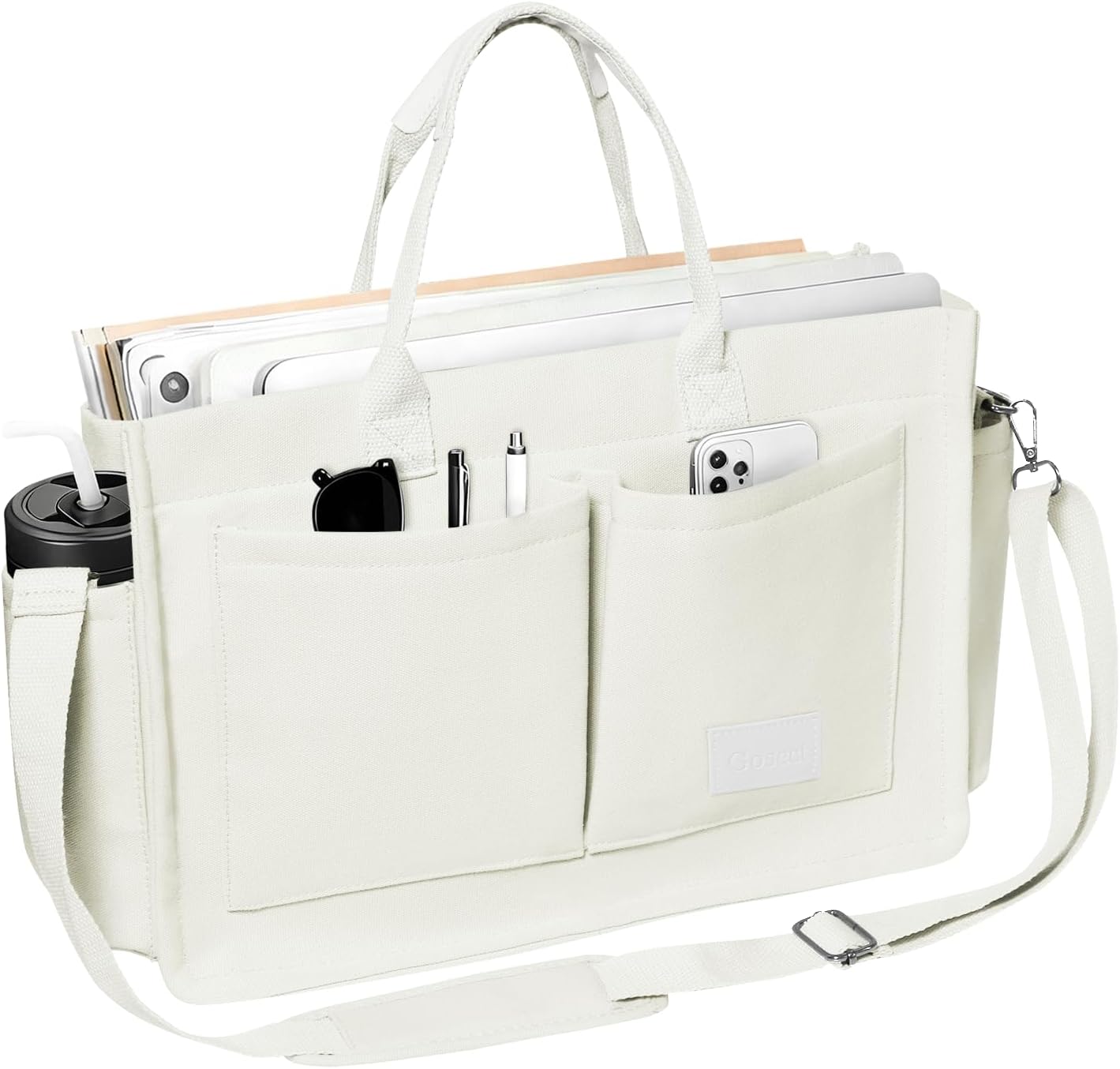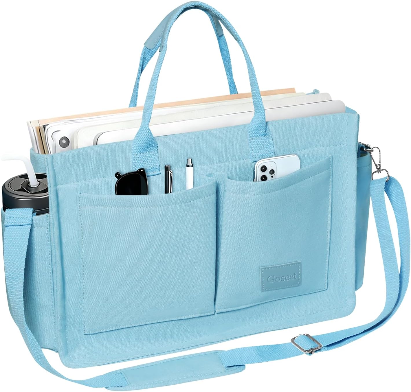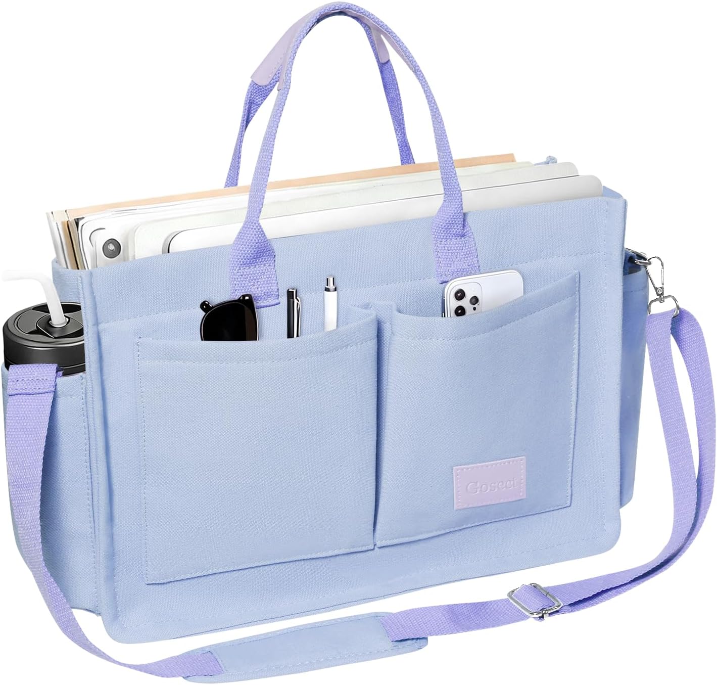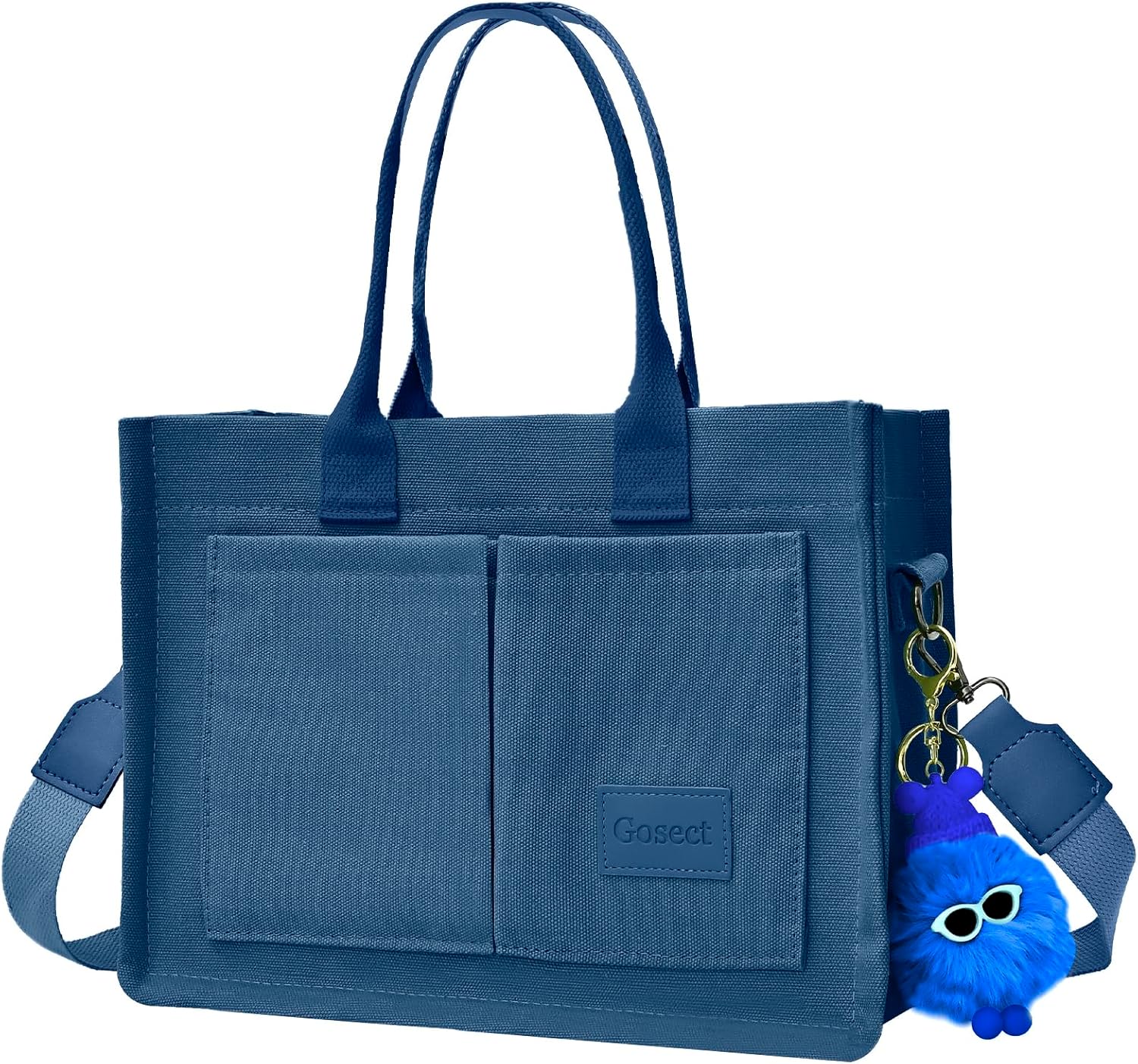 This versatile mint green canvas tote bag is designed for everyday use, offering both style and practicality. It features a spacious main compartment, ideal for carrying essentials like a laptop, books, or daily necessities. The exterior is equipped with two prominent front pockets, providing easy access storage for smaller items. The bag includes sturdy top handles for hand carrying and a detachable, adjustable shoulder strap, allowing it to be worn as a crossbody or shoulder bag. The durable canvas material makes it suitable for various occasions, from work and school to casual outings. Its minimalist design, accented by a small brand patch, appeals to individuals seeking a functional yet fashionable accessory.