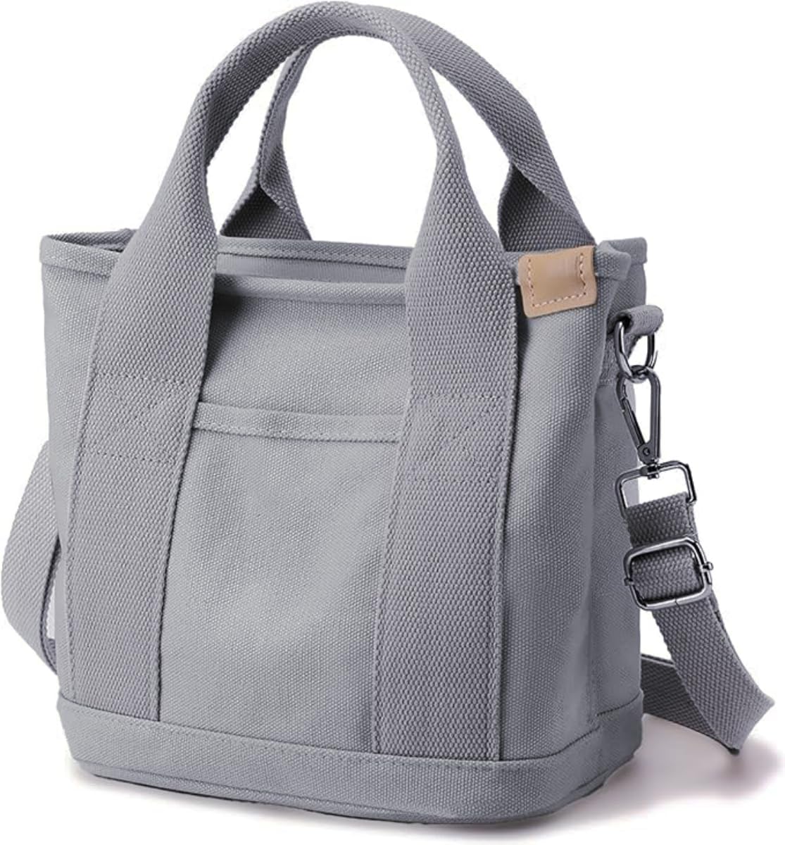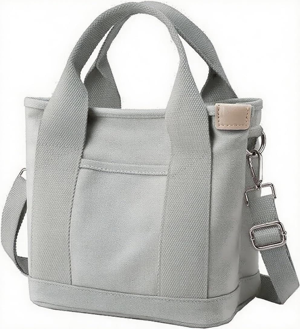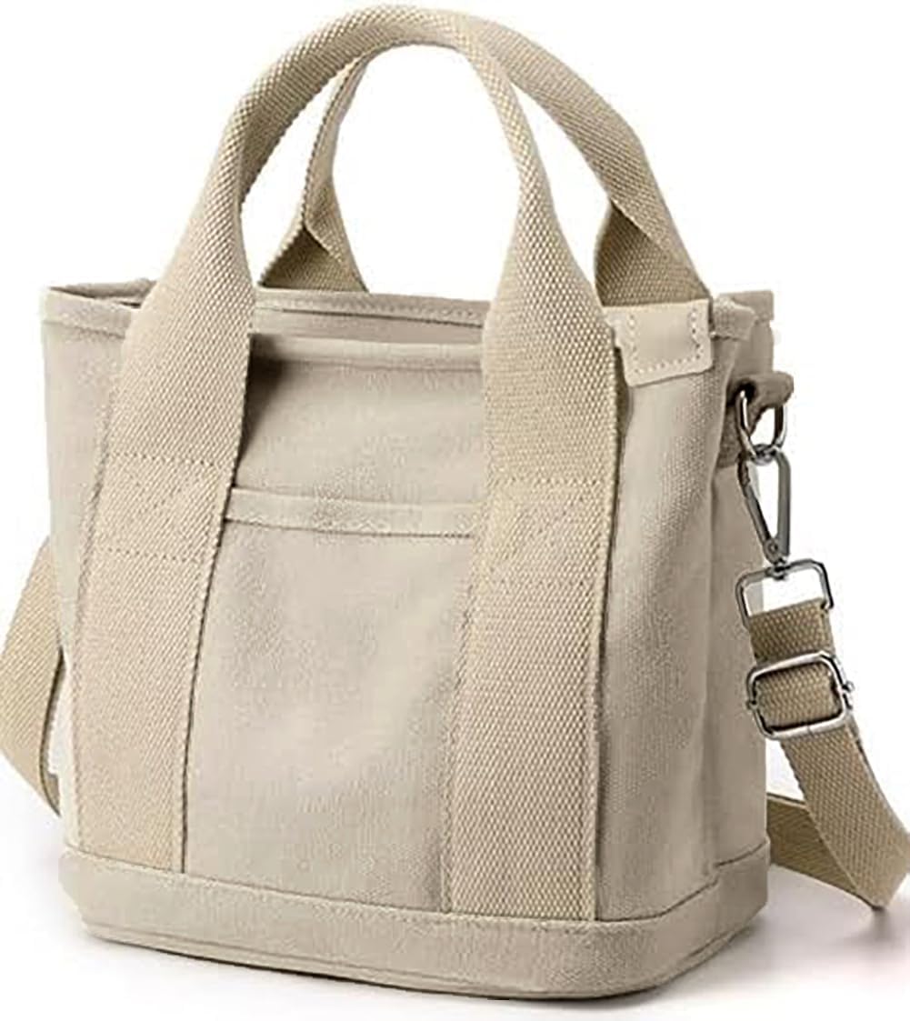 Small Canvas Tote Crossbody Bag with Zipper Closure