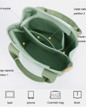 Mint Green Canvas Tote Bag With Front Pockets And Shoulder Strap