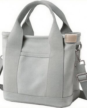 This versatile small tote bag is crafted from durable canvas material, offering a casual yet stylish accessory for everyday use. It features a main compartment with a secure zipper closure to keep your belongings safe, along with visible exterior pockets for quick access to essentials. The design includes both short handles for carrying as a handbag and a detachable, adjustable long strap for comfortable crossbody or shoulder wear. Its compact size makes it ideal for carrying daily necessities without being bulky.